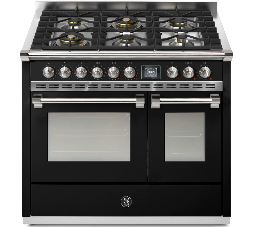 • matt black enamelled cast iron grates, which are continuous across the cooking surface, allow for easy movement of pots and pans from one burner to another without the need to lift them